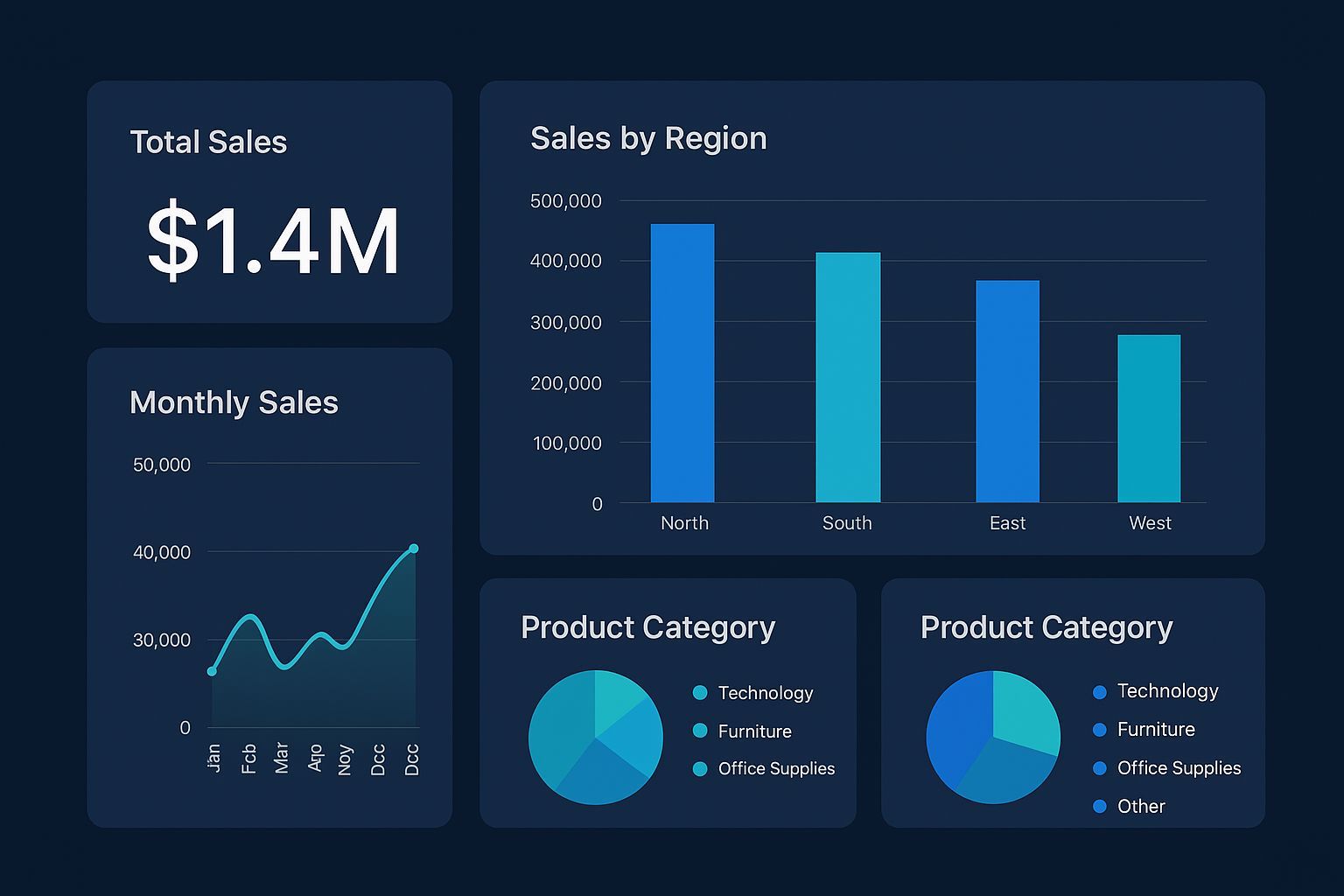 5 multi-select filters: Time Period, Category, Channel, Region, Customer Segment
